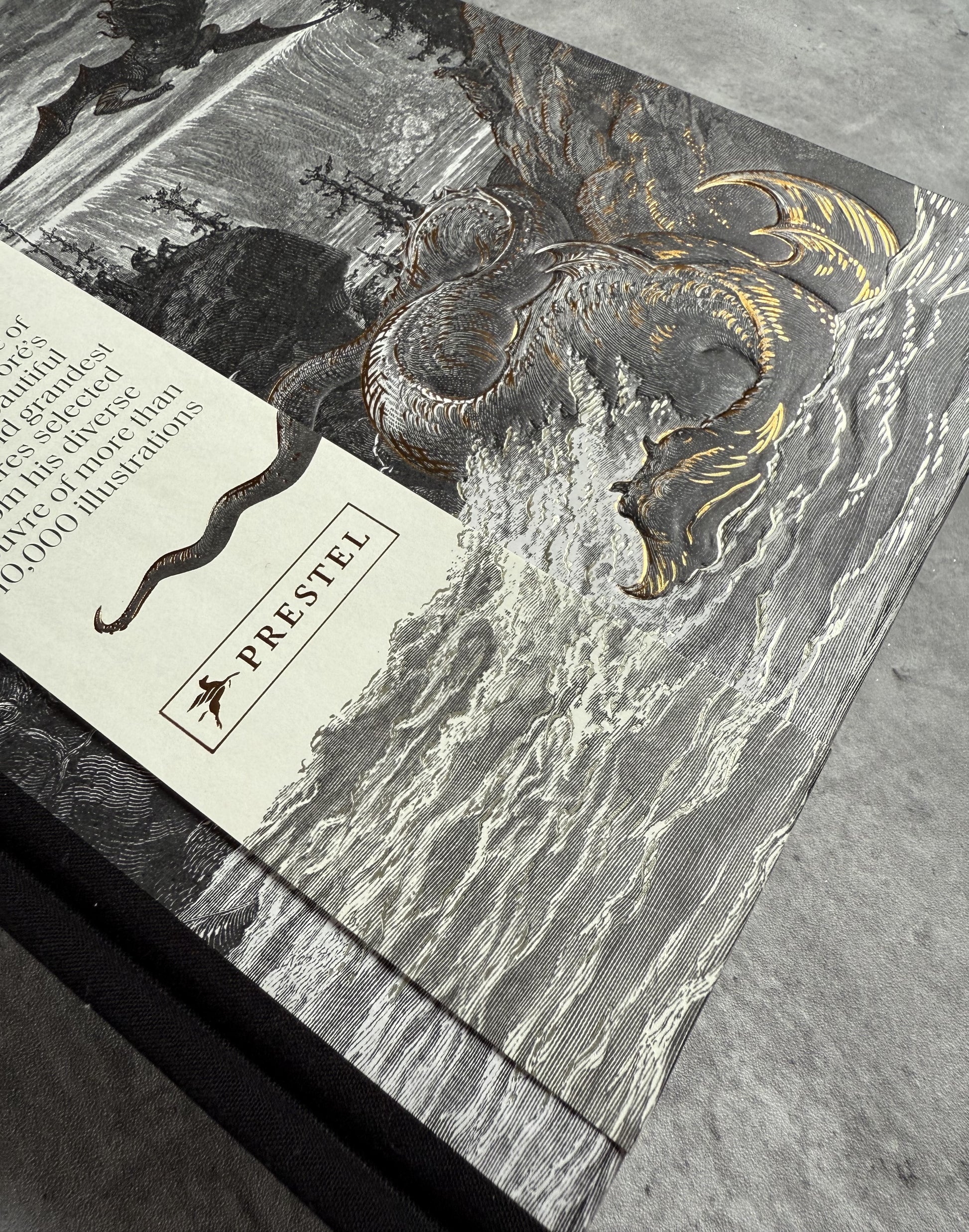 Fans of Doré will appreciate this volume's spectacular production, which features quarter binding, gold foil stamping, embossing on the cover and spine, a belly band, and silkscreen printing on three edges. It is absolutely stunning.
